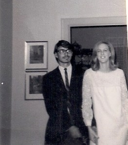 During the first week of class, I was sitting in the student union with a group of girls when someone handed me a folded note. It read “Can you meet me tomorrow at 4pm by Old Main?” I looked up to see who might have passed that note to me. I locked eyes with a most appealing young man. He had shaggy brown hair, a mustache and goatee, and was dressed beatnik-like with a tan corduroy jacket and ‘desert boots’. Love at first sight! He was out of character with 99% of the student body at good ole SWTSU and that intrigued me.